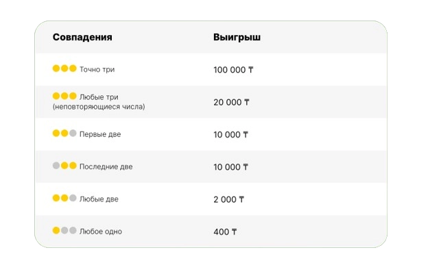 | 💷 Лицензирование | Лотерея регулируется государственными органами Казахстана, что гарантирует её законность и прозрачность |